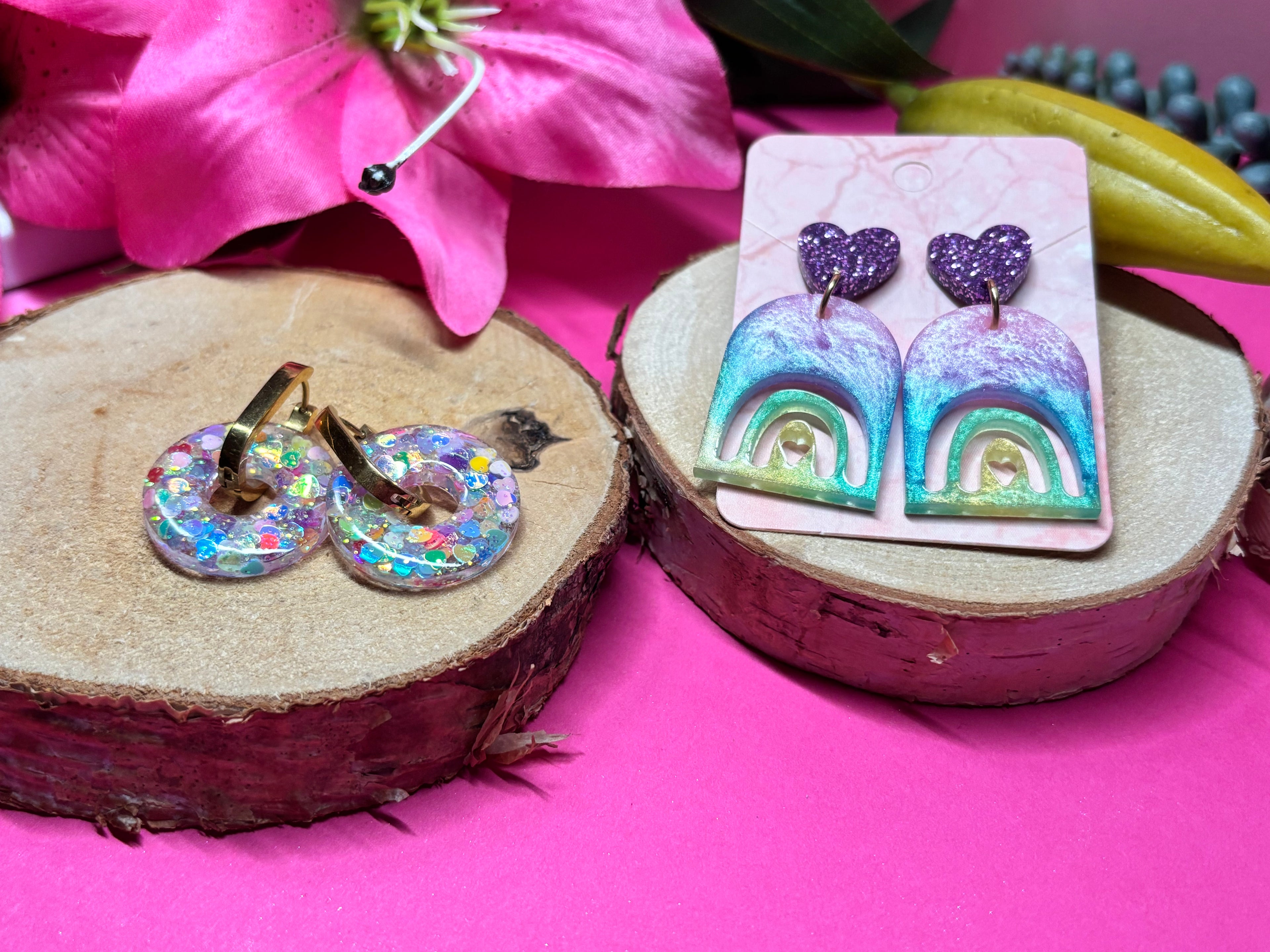Flower Hoop Earrings - Pastel Rainbow/Gold
